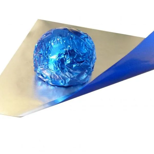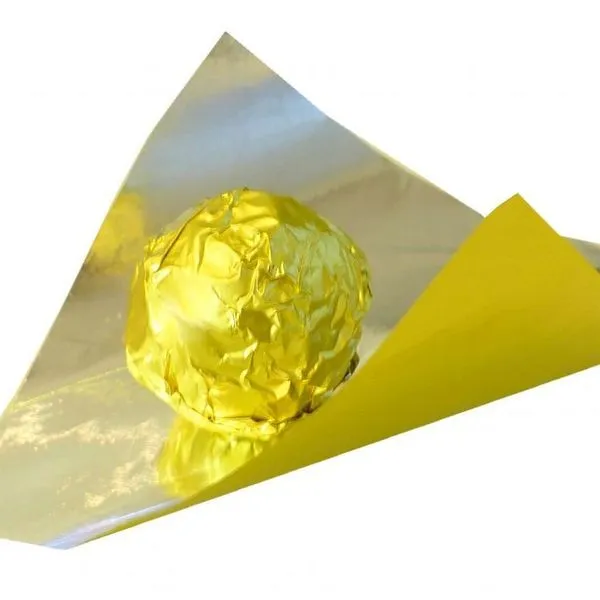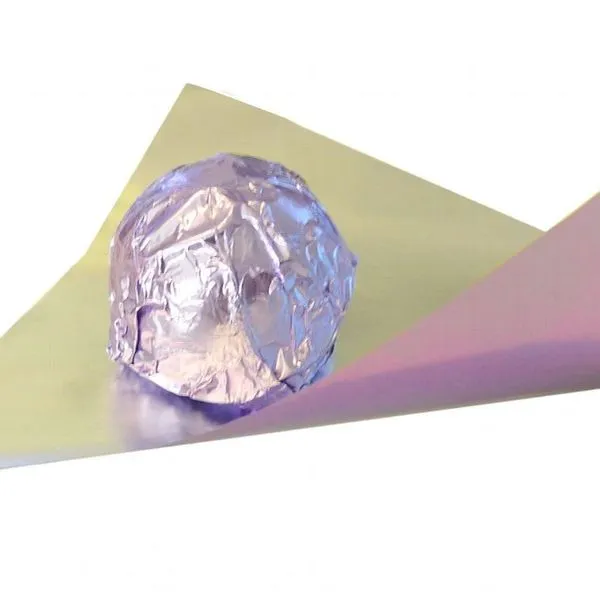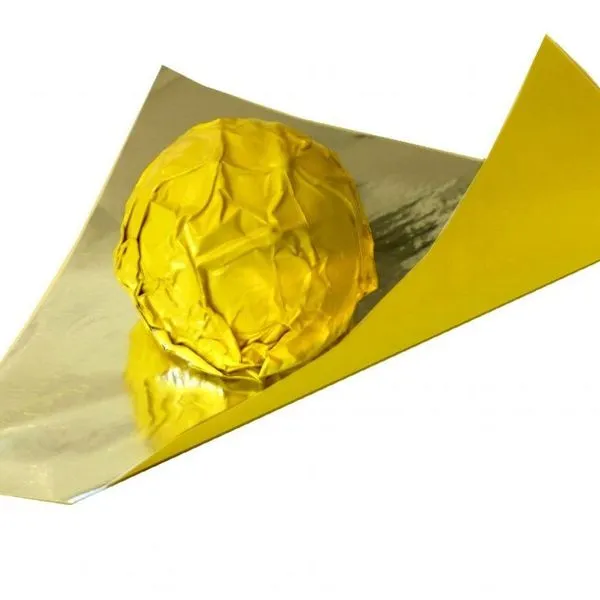 Pralinenfolie 80 x 80 mm – 50 Blatt (entspricht 10gr.) Material: Reinaluminium Stärke: 10µm Eigenschaften: anschmiegsame Alufolie Farbe: Varianten – einseitig beschichtet Besonderheiten: Schutzlackiert (färbt nicht ab) Frischhalte Effekt für Aroma und Schokolade Dekorativ Zertifiziert für Lebe