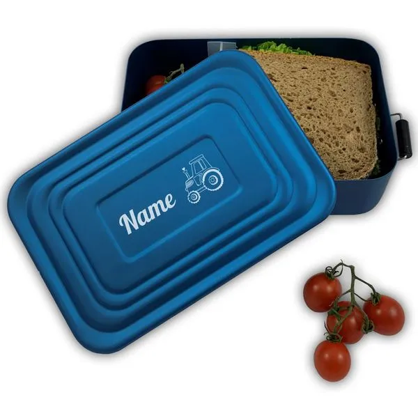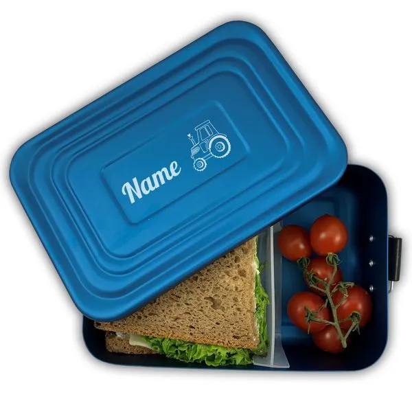 Brotdose Mit Name Lunchbox Aluminium Brotzeitbox Blau Metall Gravur Schulanfang Kita