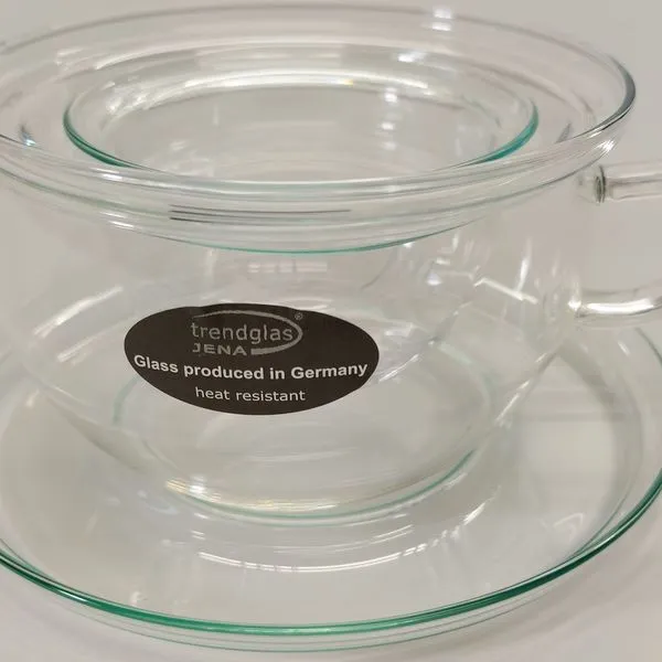 Jenaer Glastasse „Tea Time“ Mit Glasunterteller, Glasdeckel Und Glasfilter 0,3l