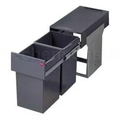 Spetebo Abfalleimer 2×25 Liter Duo Bin – Farbe: Grau Mit Schwarzem Deckel – Mülleimer XXL