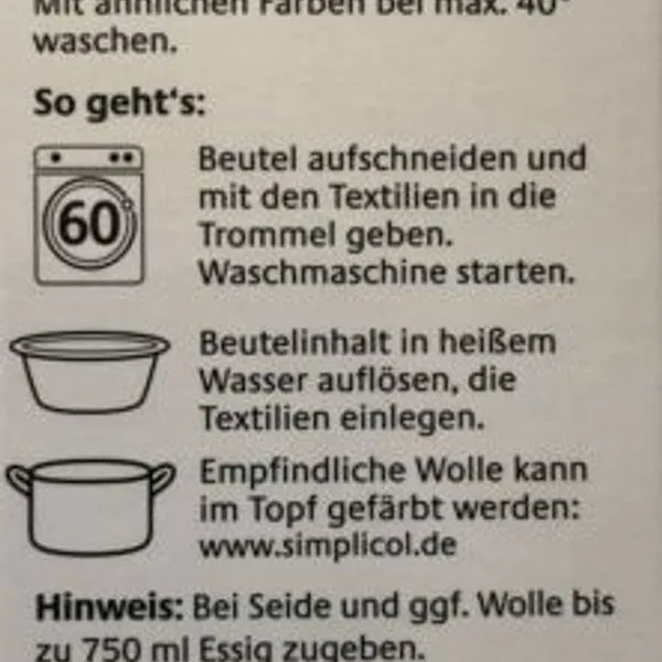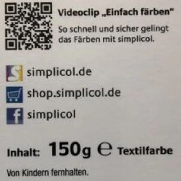 Simplicol Textilfarbe expert – Schilf Grün – auch für Wolle & Seide – 150 gr.