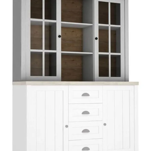 Steiner Shopping Moebel (GL) Vitrinenaufsatz Für Kommode Segnas, Farbe: Kiefer Weiß / Eiche Braun – 111 X 130