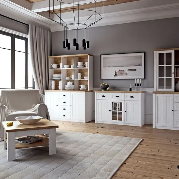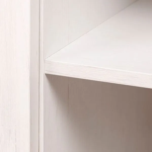 Vitrinenaufsatz für Kommode Segnas, Farbe: Kiefer Weiß Eiche Braun – 111 x 130 x 35 cm (H x B x T) Kombinierbar mit den Kommoden Segnas. Entspannen, Wohlfühlen oder einfach mal die Seele baumeln lassen – die Produkte der Serie Segnas schaffen ein besonderes Highlight in Ihrem Zuhause. Die Möbel präs